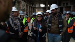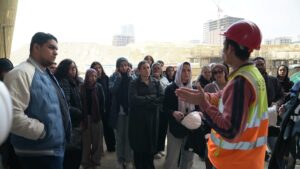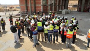 وشارك في الزيارة 57 طالبا من كلية الهندسة بجامعة ” UH ” الى جانب 8 من أعضاء هيئة التدريس، حيث قاموا بجولة تفقدية داخل المشروع للتعرف على مراحل التنفيذ المختلفة، والاطلاع على أساليب البناء الحديثة والمستدامة، وكذلك نوعية المواد المستخدمة في الإنشاءات، بما يسهم في ربط الدراسة الأكاديمية بالتطبيق العملي داخل مواقع العمل.